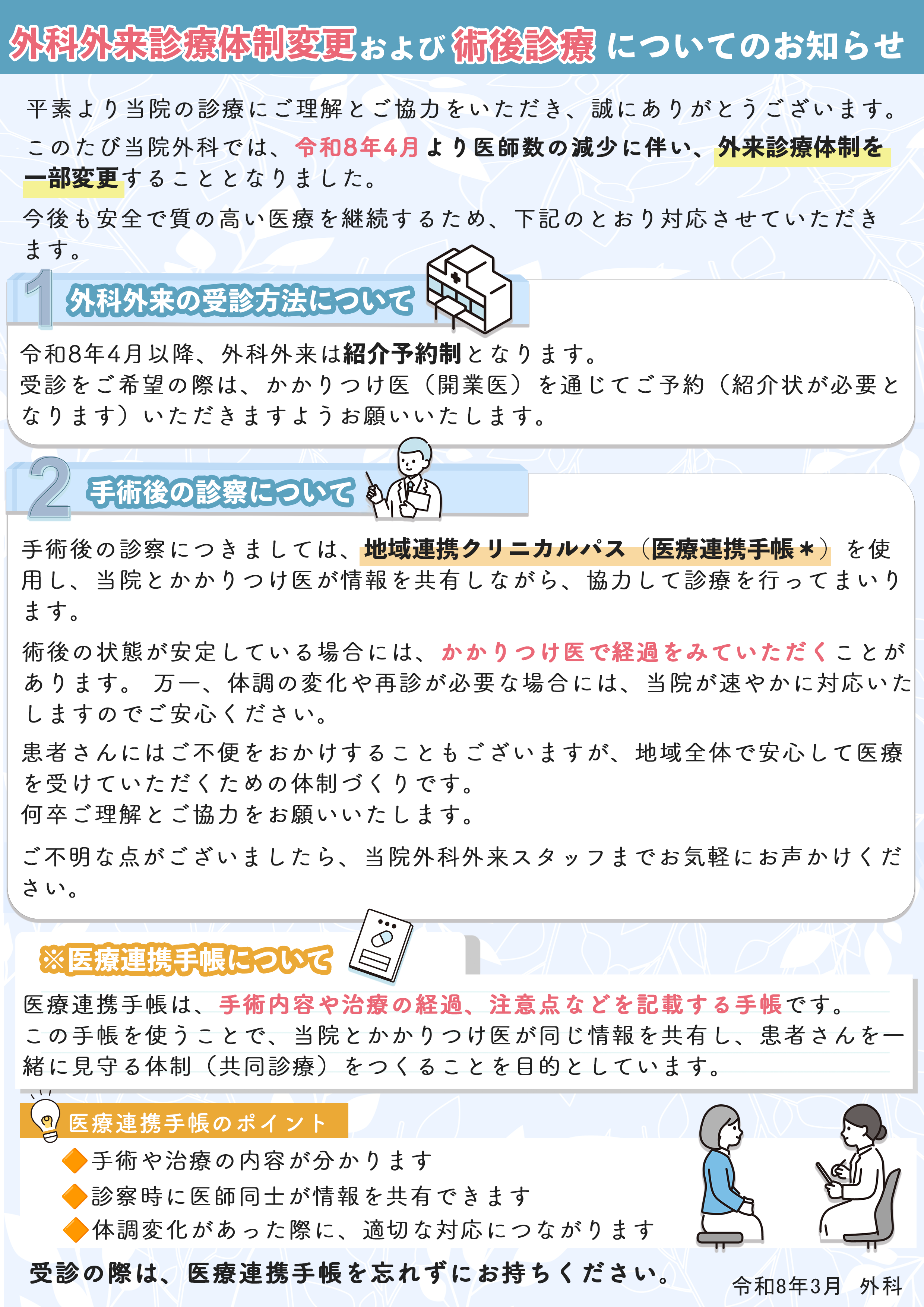 泌尿器科は令和2年3月より完全予約制となります。詳細は