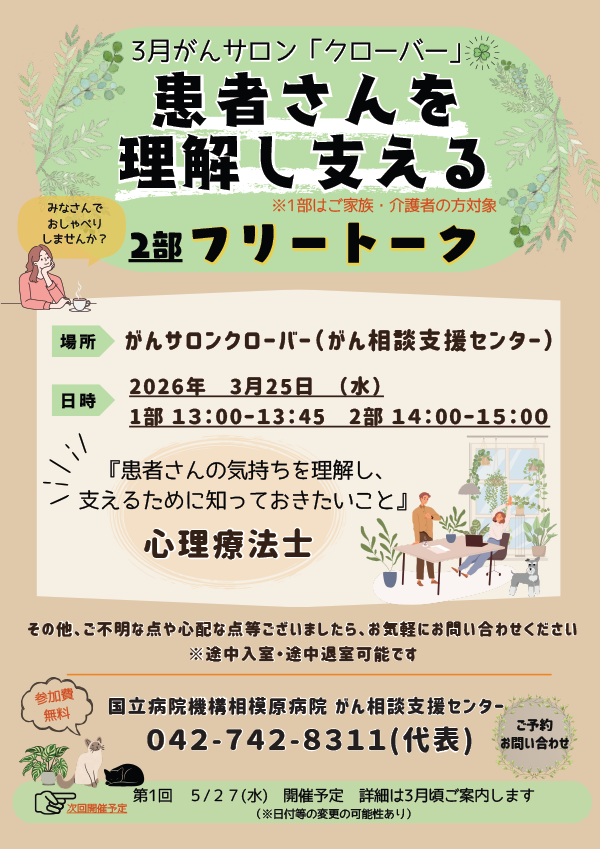 ・お問い合わせ TEL042-742-8311(代表)「がん相談支援センター」